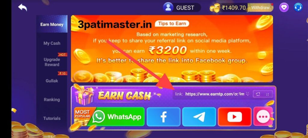 One of the best features you’ll find in Teen Patti Master Golden India is Refer & Earn. You’ll earn money without playing the game, but how? I’ll explain.